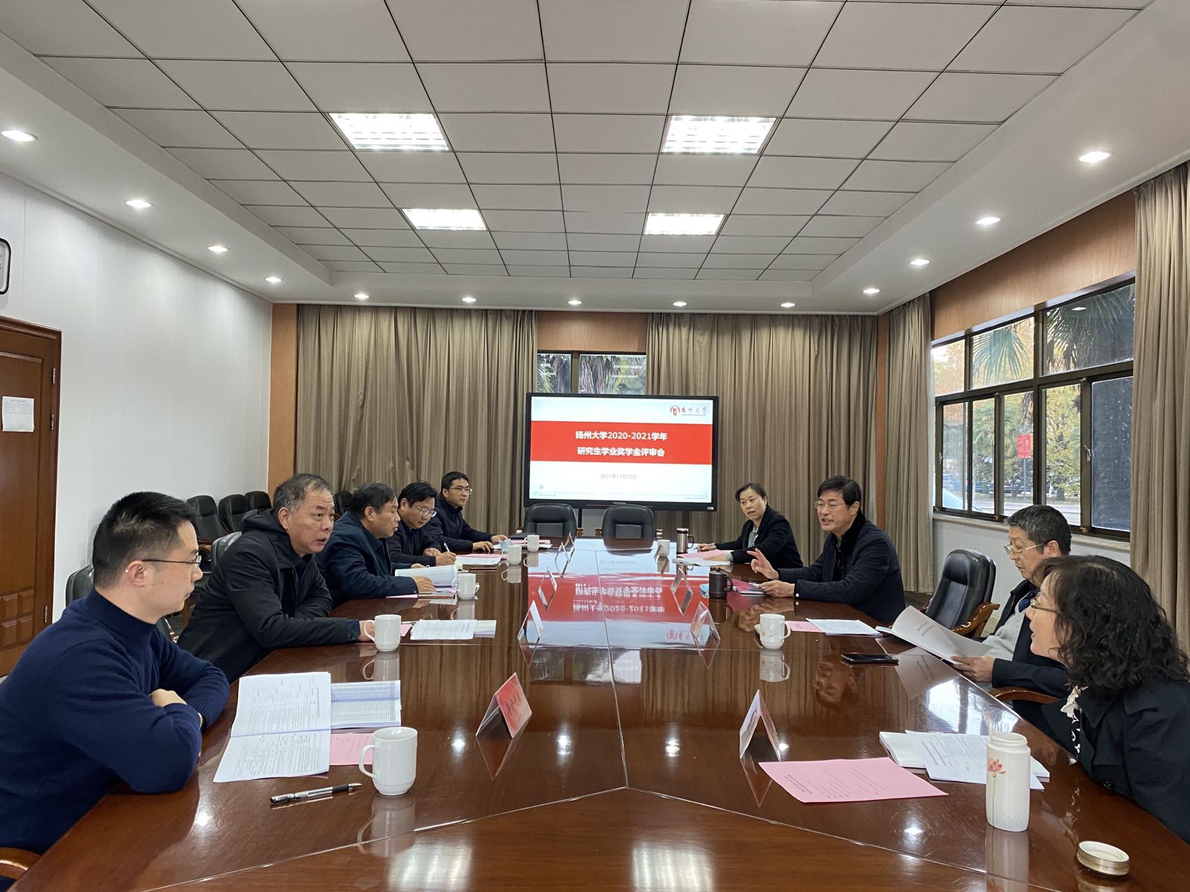 11月23日下午,学校在校行政楼101会议室召开2020-2021学年研究生学业奖学金评审会。校党委副书记叶柏森、副校长陈国宏出席评审会。