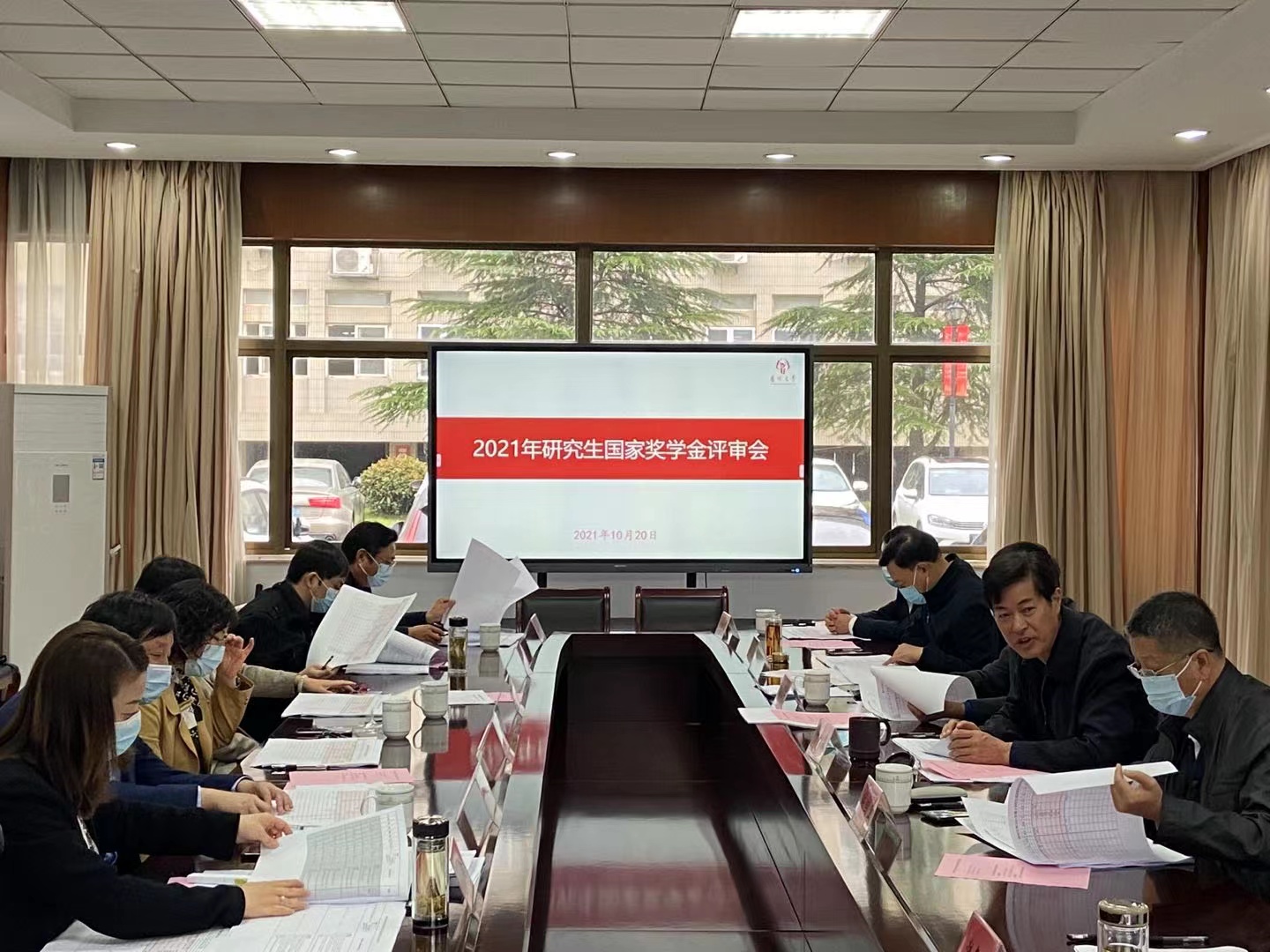 10月20日下午,学校在校行政楼118会议室召开2021年研究生国家奖学金评审会。校党委副书记叶柏森、副校长陈国宏出席评审会。