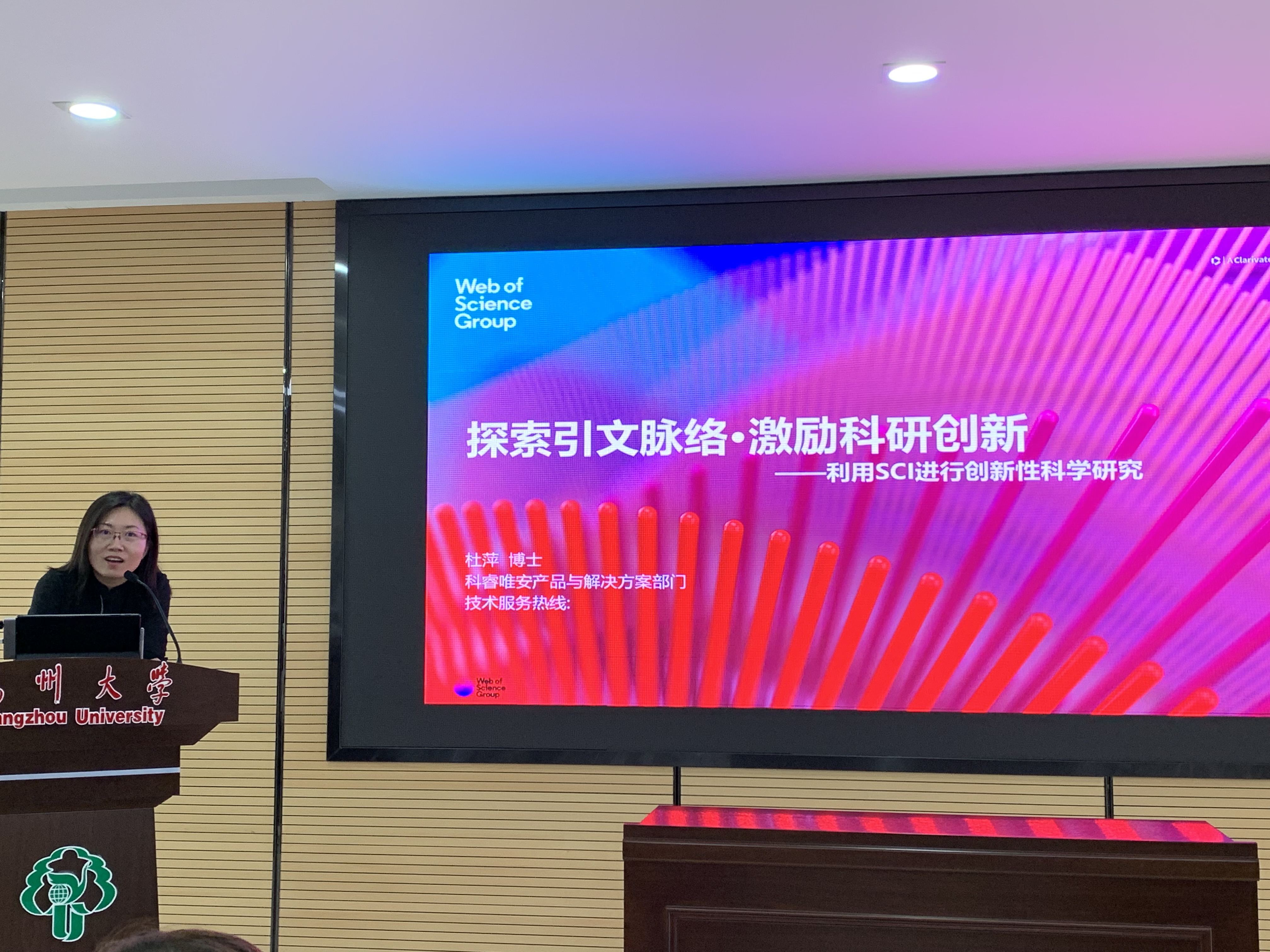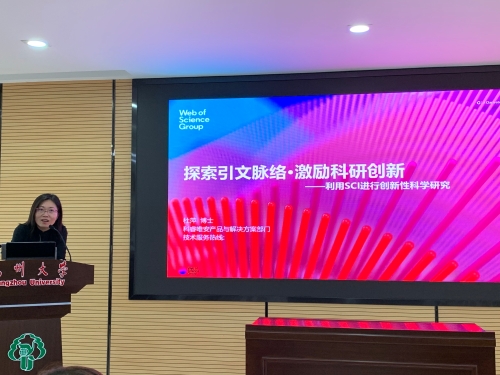 9月24日下午,图书馆和研究生工作部邀请科睿唯安产品与解决方案专家杜萍博士在瘦西湖校区8号楼三楼报告厅举办了“探索引文脉络·激励科研创新——SCI助力科学研究” 的专题讲座。300多名师生参加了活动。