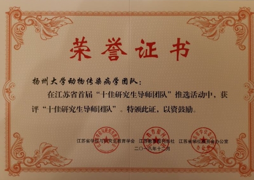日前,江苏省学位与研究生教育学会、江苏教育报刊总社、江苏省学位委员会办公室公布了江苏省首届 “十佳研究生导师”和“十佳研究生导师团队”获奖名单。我校动物传染病学团队获首届江苏省“十佳研究生导师团队”荣誉称号,文学院教授姚文放获首届江苏省“十佳研究生导师”提名。