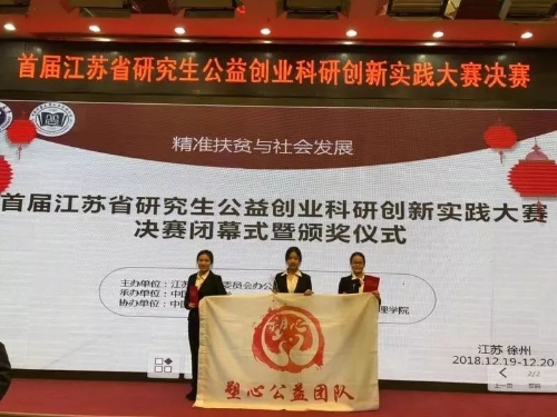 12月19日至20日,以“精准扶贫与社会发展”为主题的首届江苏省研究生公益创业科研创新实践大赛在中国矿业大学举办,来自9所高校的12个项目团队展开角逐。我校共有两支队伍参与其中,旅游烹饪学院·食品科学与工程学院“塑心”项目获得一等奖,社会发展学院“聚力:多元协同社区教育工作坊团队”获得二等奖。与此同时,王军老师、王敏老师获得优秀指导老师奖,我校获得优秀组织奖。