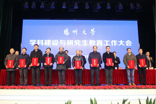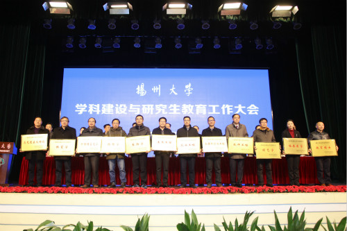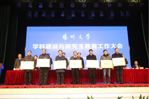兽医学院、化学化工学院、医学院、信息工程学院负责人,导师代表、文学院教师姚文放教授分别作大会交流发言。主席台就座的领导及嘉宾先后为江苏高校优势学科建设工程三期项目入选学科、新增博士学位授权点授牌,为学科建设与研究生教育先进单位颁奖。