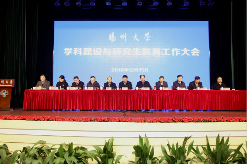 12月15日,学校在文汇路校区大礼堂隆重召开学科建设与研究生教育工作大会。江苏省教育厅副厅长洪流出席会议并讲话。校党委书记姚冠新作题为《聚焦一流,乘势而上,写好学科建设与研究生教育工作的奋进之笔》的总结讲话。校长焦新安作题为《深化改革创新,强化优势特色,加快高水平学科建设和高质量研究生培养》的工作报告。校党委副书记叶柏森宣读关于表彰学科建设与研究生教育先进单位的决定。全体在扬校领导,中国工程院院士张洪程,省教育厅研究生处处长(学位办主任)杨树兵出席会议。
