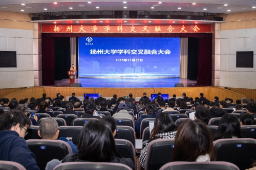 12月12日,学校召开学科交叉融合大会。校党委书记丁建宁、校长刘巧泉出席会议并讲话。中国工程院院士、中国农业科学院万建民教授视频致辞。中国科学院院士、南京大学郭子建教授,江苏师范大学杨亦鸣教授作主旨报告。全体在扬校领导、党委常委出席会议。